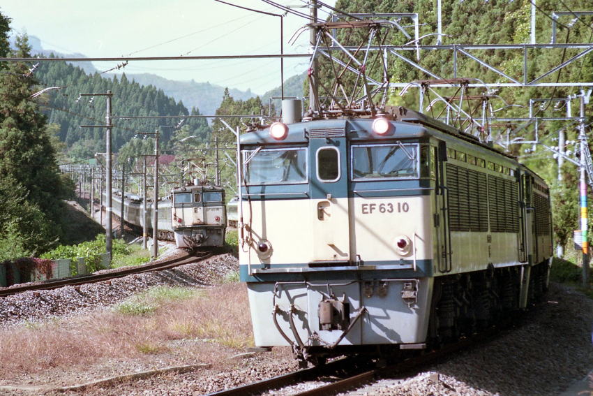 長野新幹線が開通する以前、峠の釜飯で有名な横川と軽井沢とを結ぶ碓氷峠を通過する列車は、粘着運転が可能な2両のEF63型電気機関車を横川側に連結して、低速走行で峠を上り下りしていました。宇都宮からは150キロ程度と遠い距離にあった碓氷峠ですが、1997年の春頃から大凡2ヶ月毎に通い、旧丸山変電所やめがね橋周辺で撮影を行いました。列車主体の写真が好みなので、結果的には線路際からの編成写真ばかりになってしまいましたが、画像を見る度に長い編成の「あさま」や「白山」を従えたEF63のブロワー音が鮮明に蘇ってきます。