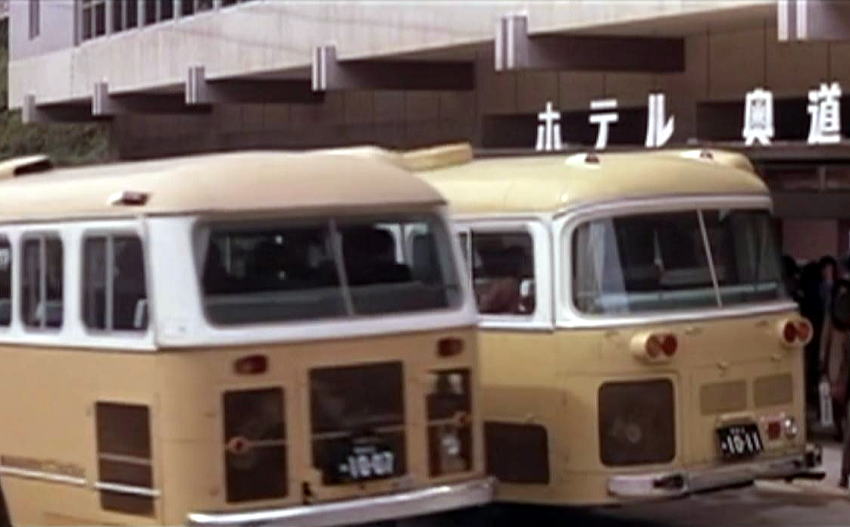 | 昭和43年に公開された日本映画、「青春の風」からの抜粋。三菱車といすゞ車の珍しい並びです。 | ||