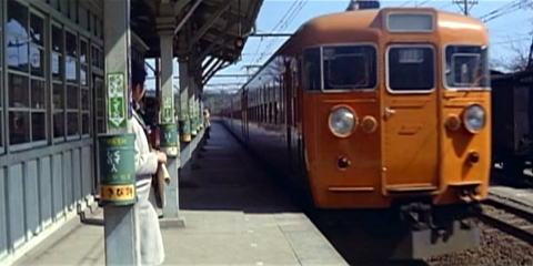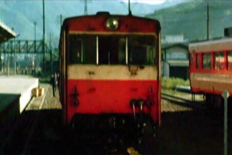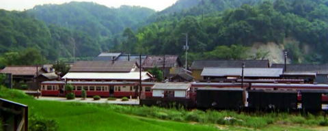 上2枚 地方の小さな国鉄の駅と、キハ58系11連の急行列車 「約束」より
