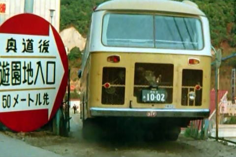 上2枚 元岩手県南バスを薪バス風に改装した劇中車、日野BH15/安全 「不連続殺人事件」より